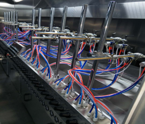 地軌式自動噴涂線介紹地軌式自動噴涂線也叫固定噴槍噴涂線或spindle自動噴涂線,原理就是把噴槍固定起來,根據(jù)工藝要求進行噴涂。其功能集地面自動輸送線,固定自動噴涂,自動烘干T等一體化系統(tǒng),并結(jié)合無塵凈化車間,恒溫控制,廢氣處理系統(tǒng)組成,可以根據(jù)需求設(shè)計兩涂兩烤,三涂三烤,四涂四烤,再加上UV固化設(shè)備。地軌式自動噴涂線特點與優(yōu)勢:1.起到靜電除塵,噴涂、烘干、UV固化自動噴涂流水的功能,適合批量連續(xù)生產(chǎn),產(chǎn)量高,噴涂均勻。2.輸送鏈條與軌道接觸點配置軸承,配合精準的軌道,運轉(zhuǎn)時輕快平穩(wěn)不抖動,3.靜電除塵系統(tǒng),進口高要靜電發(fā)生器,離子風嘴可上下前后機械式調(diào)節(jié),可配合產(chǎn)品大小不同而變化,加上工件自動,除塵無360度死角。4.固定式自動噴槍可用于步進是或者聯(lián)系的在線噴涂,及簡單又實用。采用工件高速自動噴涂,行程及速度可調(diào)節(jié),靈活性大,無死角。5.水簾環(huán)保噴房設(shè)計,氣流順暢潔凈,噴房室內(nèi)導(dǎo)流板機擾流板的精心配置,讓亂流遠離工件,并快速循環(huán)利用。6.UV固化室內(nèi)設(shè)都說進口等,任意調(diào)節(jié)照射距離與角度。可以任意選擇燈工作數(shù)量,根據(jù)照射強度選擇,工件自動旋轉(zhuǎn)設(shè)計,保證了工件照度均勻。好了,以上就是有關(guān)地軌式自動噴涂線介紹,大家學會了嗎?